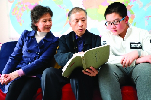 30年来,周述忠坚持用地方文史传播爱国主义精神,让无数听众受到感染。图为周述忠在向家人讲述桂林抗战史。景碧锋 摄