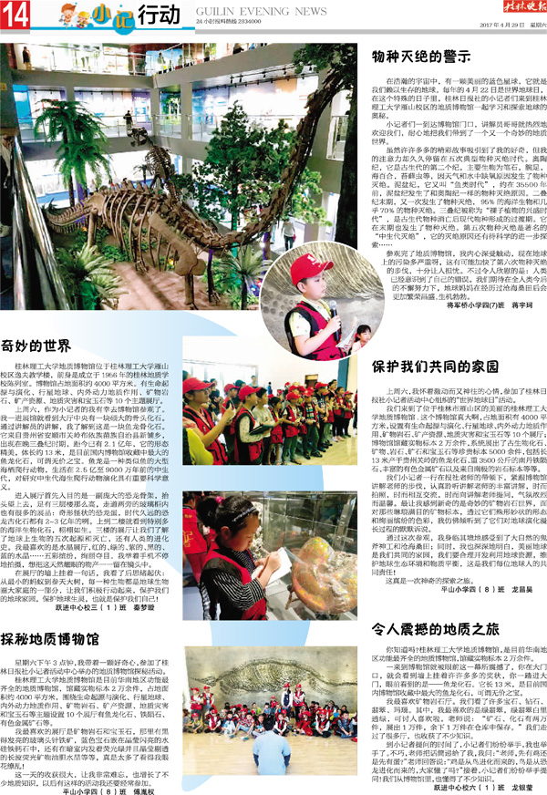 《桂林日报》2017年4月24日第4版:地球日,小记者到地质博物馆“探秘”