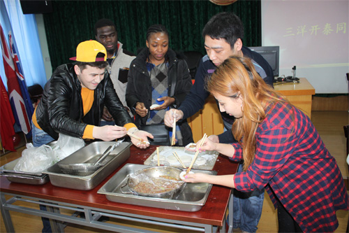 “五洲学子齐欢聚桂工,三阳开泰同圆梦中国。”在中国传统佳节——春节到来之际,Beat365官网举行了来华留学生欢庆新年活动。广西电视台新闻频道《新闻第一击》栏目对此次活动进行了报道。 2015年2月15日,来自俄罗斯、塔吉克斯坦、喀麦隆、印度尼西亚等15个国家的80多名留学生齐聚一堂,欢度他们眼中的中国“洋”年。写春联、包饺子、发红包——欢乐祥和的气氛和浓浓的中国元素让他们亲身体验了春节的文化内涵,感受着母校桂工的祝福和温暖。