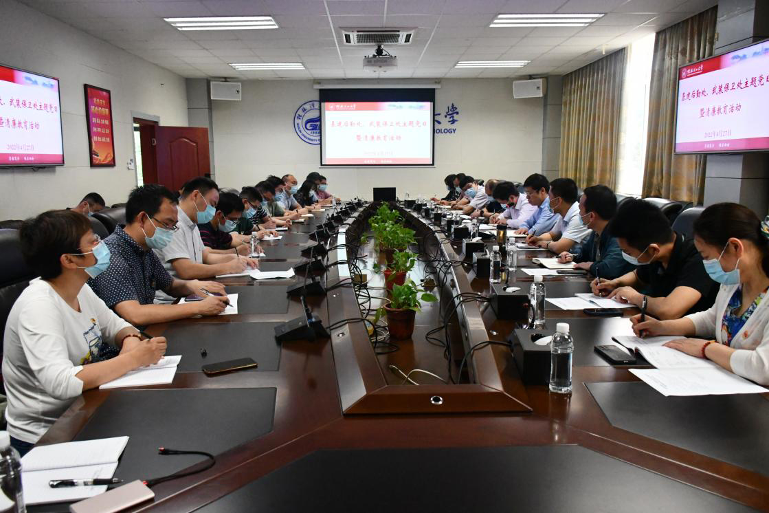 为进一步压实校园安全管理责任,推动基层党建工作创新开展,机关党委基建后勤处党支部、武装部保卫处党支部结合学校清廉教育活动有关安排,于4月27日上午在雁山校区行知楼A201会议室联合开展了主题党日活动暨清廉教育活动。学校党委常委、副校长邓国彬同志以普通党员身份参加了本次活动。