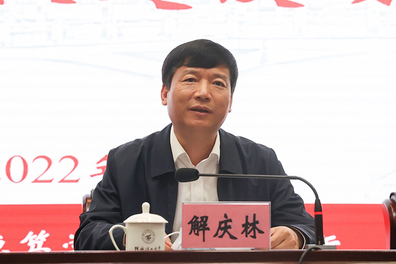 学校党委副书记、校长解庆林在会上讲话。他指出,2021年,学校坚持以习近平新时代中国特色社会主义思想为指导,严格按照中央和自治区党委部署要求,坚决扛起管党治党、办学治校政治责任,聚焦立德树人根本任务,围绕中心抓党建工作,全面从严治党不断取得新成效,为实现“十四五”良好开局、推动学校事业高质量发展提供了坚强保证。
