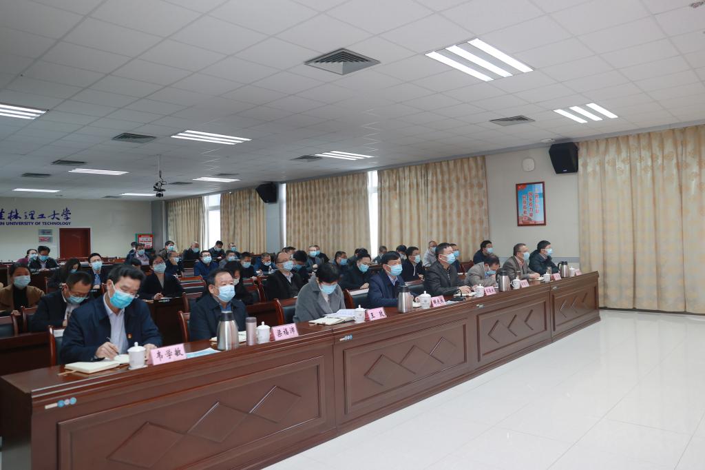 Beat365官网在雁山校区第三(视频)会议室设立分会场。校领导解庆林、齐俊斌、王玫、周国清、梁福沛、王敦球、韦学敏、邓国彬出席会议。学校党委委员、纪委委员,各职能部门、教辅单位党员主要负责人,各二级党组织书记,附小、社区办主要负责人参加会议。南宁分校设立分会场参加会议。
