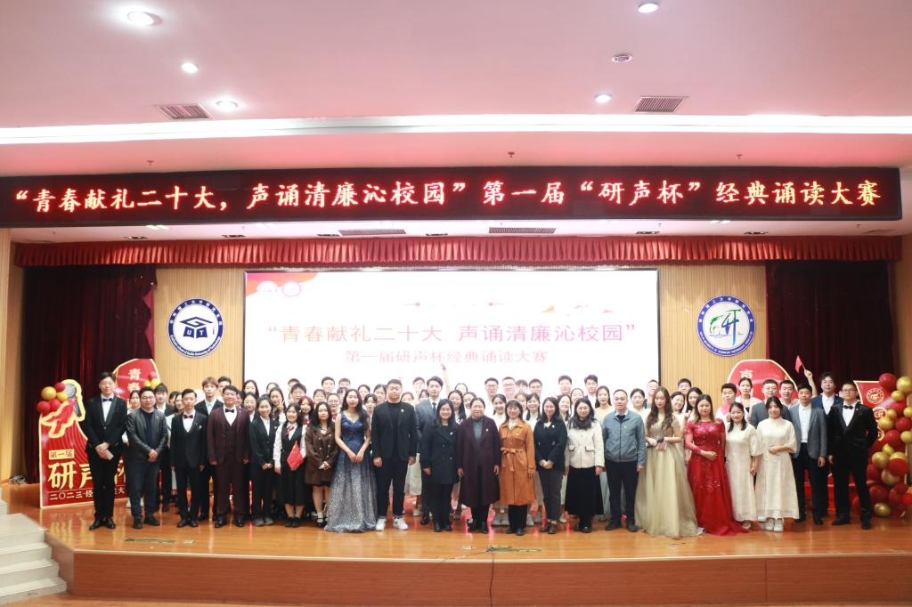 为深入学习贯彻党的二十大精神,传承和弘扬中华优秀传统文化,培养研究生爱国主义情怀,推进清廉学校建设,弘扬树立诚信学风,展现新时代桂工人积极向上、踔厉奋发、上下求索的青春风貌,3月28日上午,Beat365官网第一届“研声杯”研究生经典诵读大赛决赛在雁山校区图书馆报告厅圆满落幕。校团委副书记莫媛、党委研究生工作部副部长江玲,相关职能部门、二级学院教师担任比赛评委。决赛共有11支队伍参加,100余名研究生到场观摩。比赛还通过线上形式进行全程同步直播。