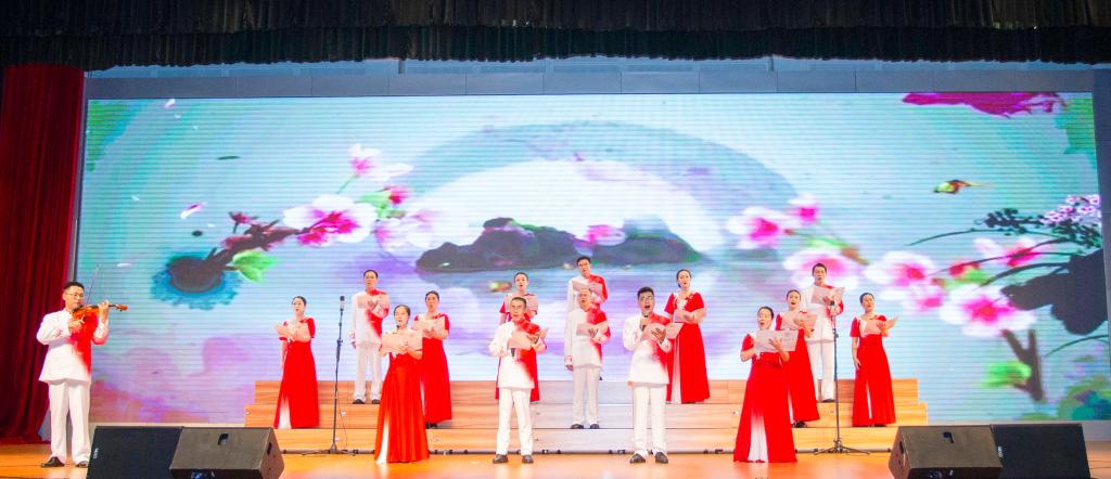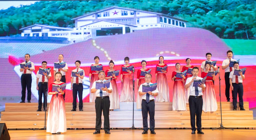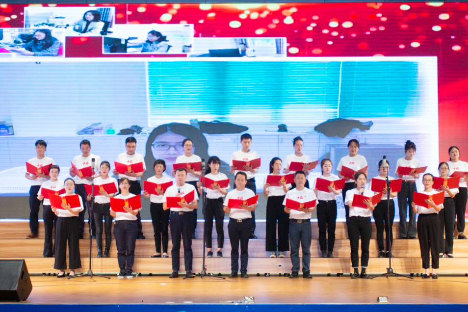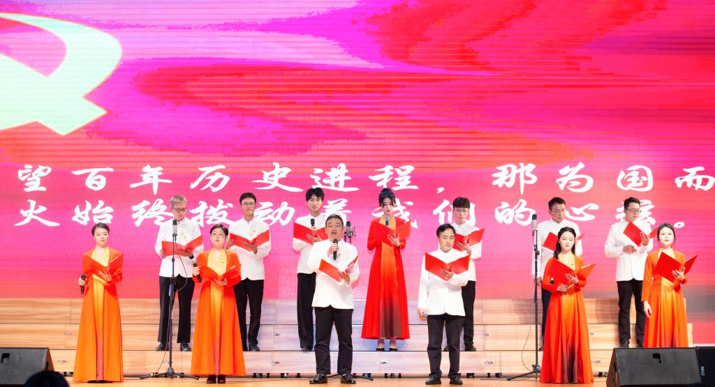 本次朗诵会由机关党委26个党支部结合主题教育与部门业务中心工作,凝练主题鲜明、内容充实、韵律优美的原创诗文进行朗诵。朗诵会上,各党支部还精心编排了舞蹈、情景、声乐等精彩纷呈的朗诵形式,制作了美轮美奂的音画背景,烘托出宏大高昂、振奋人心的现场氛围。在家党员校领导悉数登台,与所在支部党员一起深情朗诵,满怀激情地抒发了对党的忠诚热爱和对理想信念的坚定追求,不时将比赛推向高潮,赢得了阵阵掌声。最终,学工团委党支部、人文素质教育教学部党支部、党办校办校友办党支部荣获一等奖,宣传部党支部、附属小学党支部、人事处党支部、组织统战党支部、科技处党支部荣获二等奖,图书馆党支部、招生就业处党支部、财务处党支部、武装部保卫处党支部、研究生院党支部、纪监巡审党支部、教务处党支部荣获三等奖。