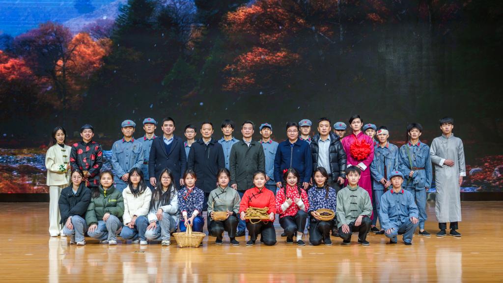 《村里来了菩萨兵》舞台剧是根据一九三零年红七军北上经过全州真实历史故事改编而来,公共管理学院编剧团队深入全州大西江与会龙铺进行调研访谈挖掘素材,走访民间并结合史料还原出红七军下全州的感人事迹进行编排导演,还原了红军长征途中有组织、有纪律、不取百姓一分一毫的场景,展现了共产党廉明清正的良好形象。