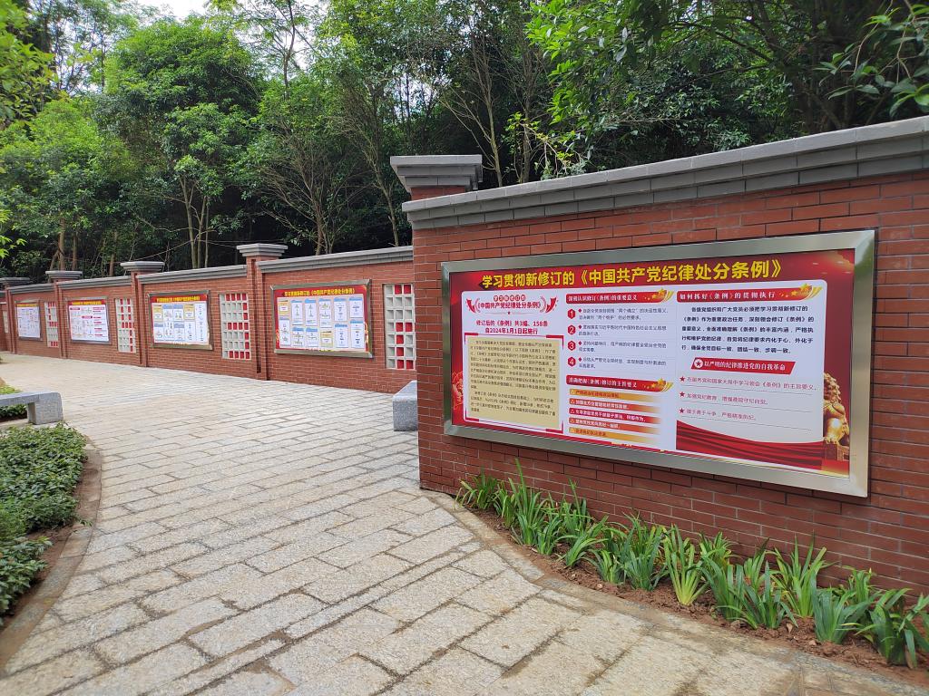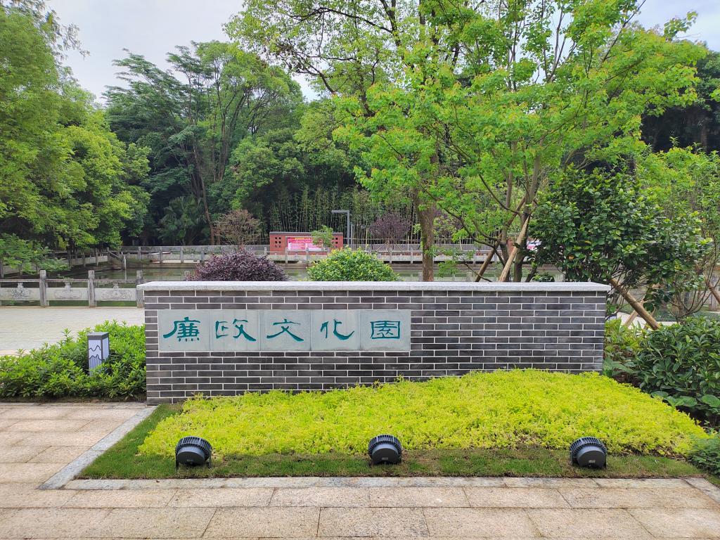 廉政文化园位于雁山校区行知楼东侧立德路旁,系在2018年建成的原廉政园基础上扩建升级而成,现占地总面积约4500平方米。该园围绕“廉”字主题,以“清正廉洁”为设计理念,依托原有的池塘、步道等基础设施,新建礼仪广场、观演广场、文化橱窗、莲池点题、花木育廉等主题场景,增设林荫步道、文化互动、滨水休憩等景观设施,形成了集廉洁教育、展示展览、现场教学、观光游览、学习休憩的多功能校园廉洁文化阵地。目前,该园展出有党纪学习教育专题内容。