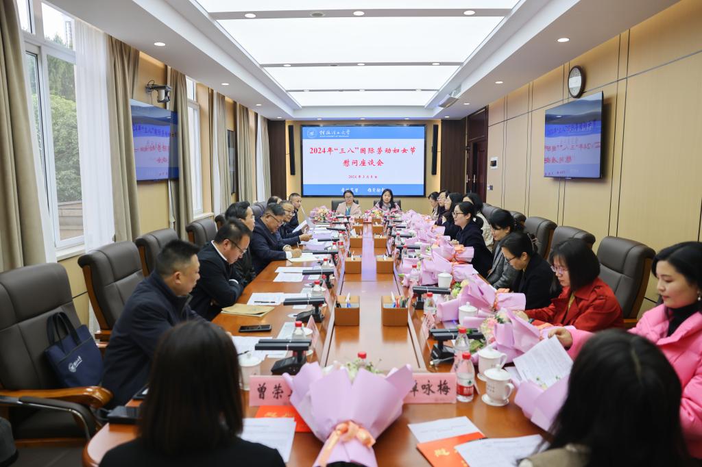 为庆祝“三八”国际妇女节,营造尊重女性、关爱巾帼的良好风尚,进一步表扬先进、树立榜样,充分发挥优秀女教职工模范引领作用,3月8日上午,学校在屏风校区第一会议室召开2024年“三八”国际妇女节慰问座谈会。学校党委书记邓军,党委副书记、校长王敦球,自治区纪委监委驻Beat365中文官方网站纪检监察组组长,学校党委常委、纪委书记韦学敏,党委常委、组织部部长唐壮东,校长助理、党办校办主任张成龙出席会议,与来自学校教学科研、党政管理、后勤服务等不同岗位的13名女教职工代表共同庆祝“三八”国际妇女节。会议由王敦球主持。