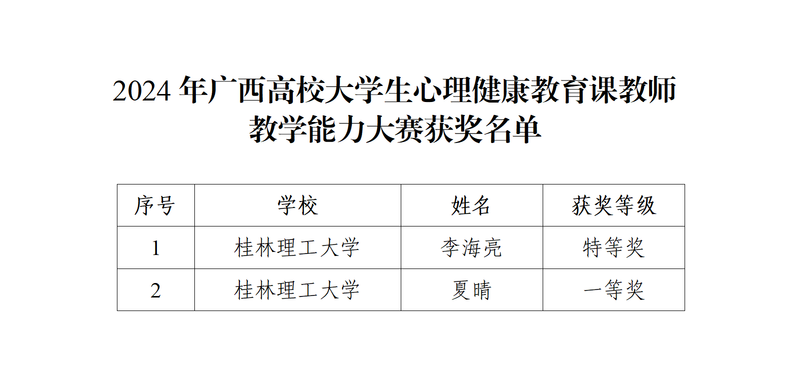 Beat365官网教师李海亮、夏晴在2024年广西高校大学生心理健康教育课教师教学能力大赛中分别荣获大赛特等奖、一等奖