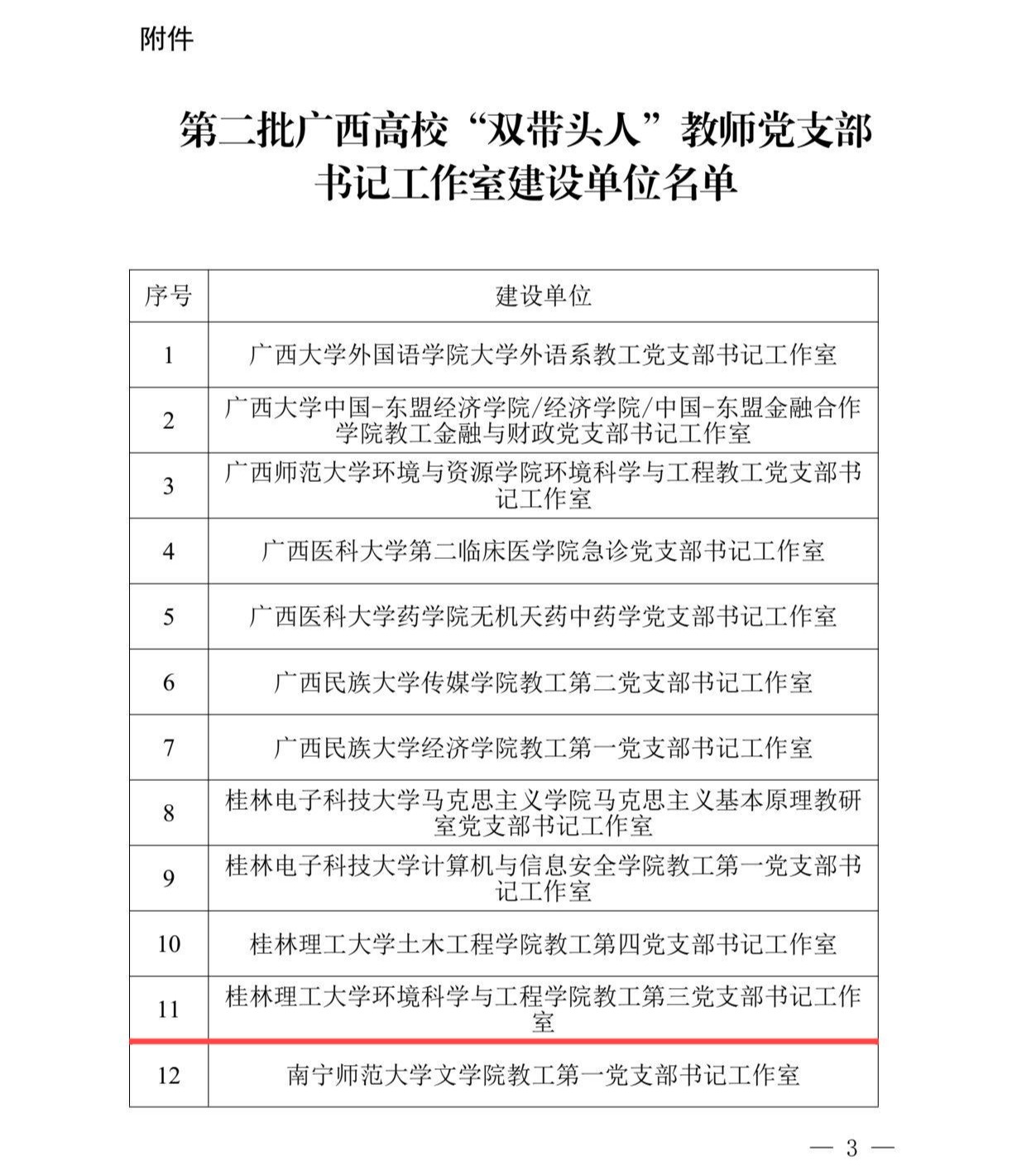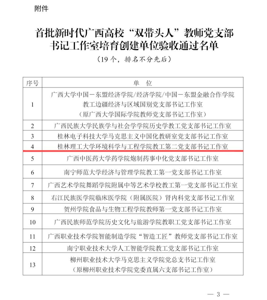 教工第三党支部(支部书记:朱宗强)获批广西高校“双带头人”教师党支部书记工作室建设单位