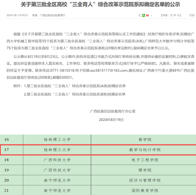学院成功入选第三批全区高校“三全育人”综合改革示范院系(A类)