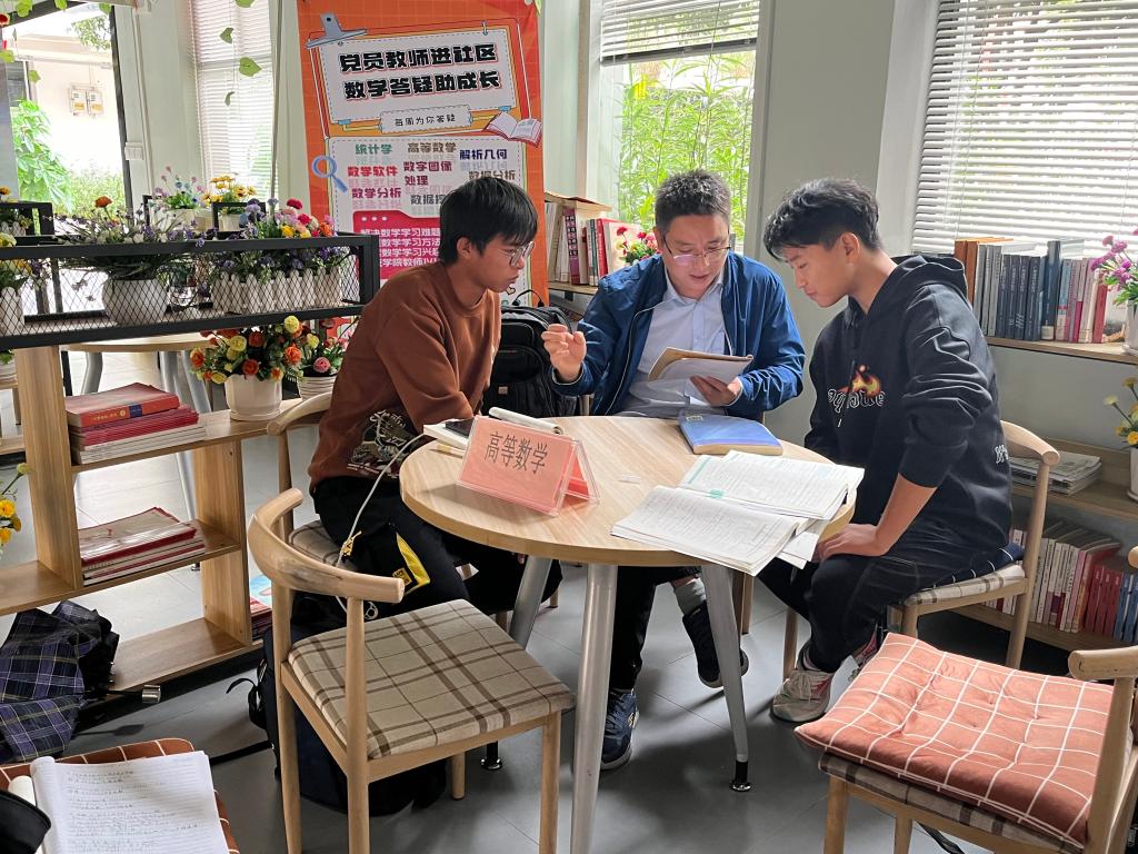 学院教师党员在“一站式”社区为学生答疑