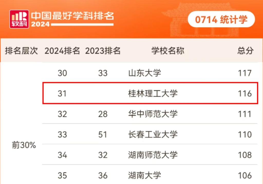 统计学学科软科排名跃升至全国第31位