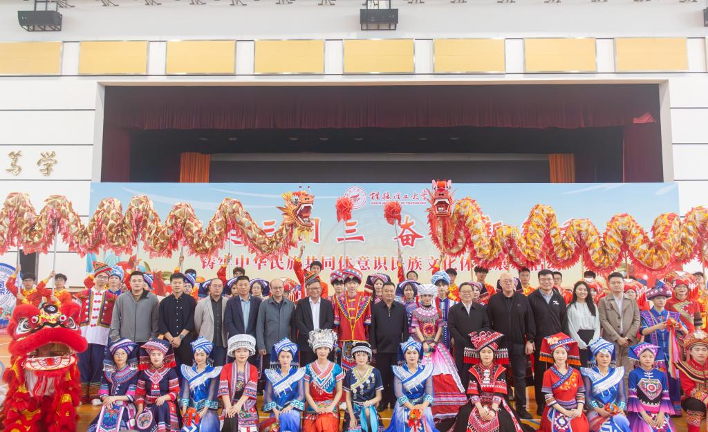 邀请自治区党委教育工委统战部部长沈鸿银为学校自治区民族团结进步示范学校揭牌,印发并实施《Beat365中文官方网站民族团结进步示范学校建设三年行动方案(2024—2027年)》。精心开设《中华民族共同体概论》必修课程,建成占地900余平方米的学校民族团结园,立项学校民族团结工作特色品牌11项,开展全覆盖宗教大摸底大排查。创新开展“潮起三月三 奋进新征程”民族风情文化节文化体验展示、“石榴花开籽同心 民族团结享盛世”主题团日、“中华民族一家亲,籽籽同心迎国庆”民族团结教育等活动,南宁分校成功举办第四届少数民族传统体育运动会,相关工作被人民网、中国新闻网、中国青年网等主流媒体宣传报道20余篇,累计浏览量突破百万。