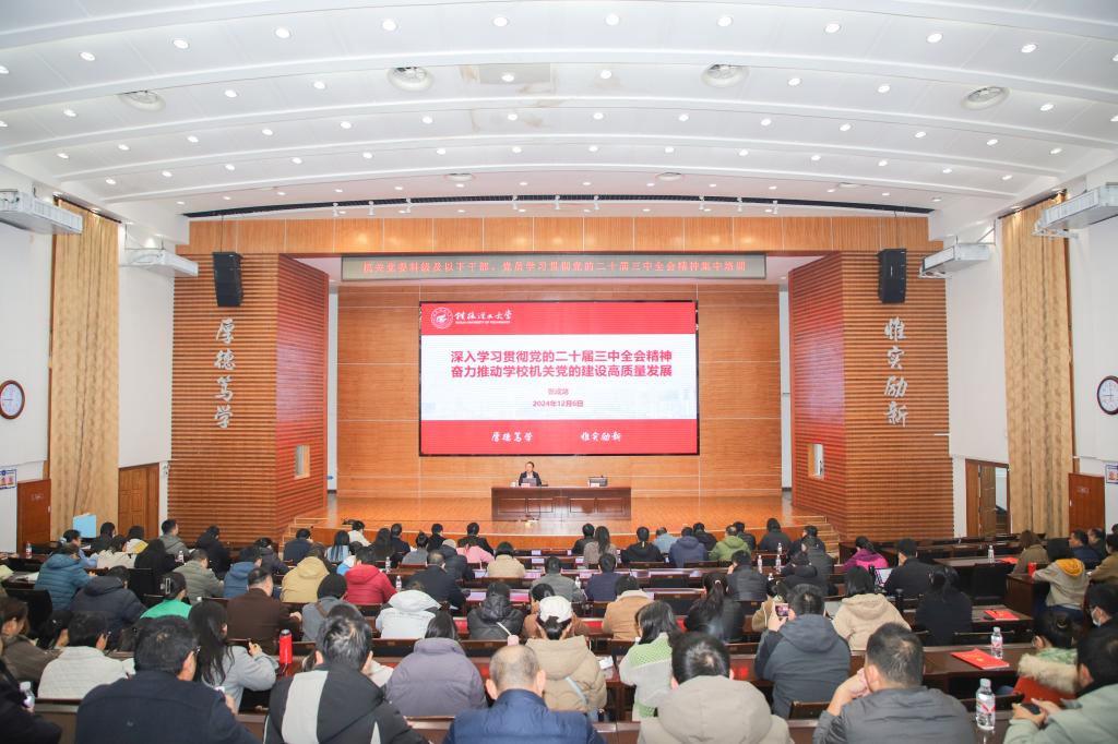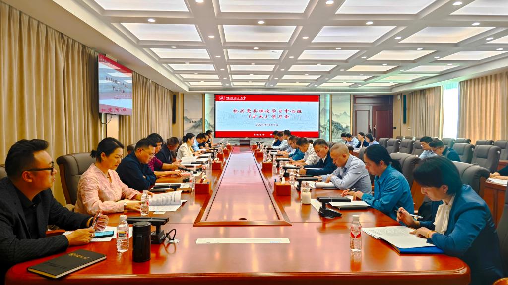坚持用党的创新理论涵养初心、引领使命,严格落实“第一议题”制度专项巡察整改工作,发挥党委理论学习中心组领学示范作用。抓好“关键少数”,带动“绝大多数”,举行机关党委“解放思想大讨论 推进融合促发展”主题交流会,组织机关党委支部书记高质量参与学校“学方略”读书班、改革发展研讨会、领导干部履职能力提升专题培训班、基层党支部书记培训班,组织开展科级及以下干部、党员学习贯彻党的二十届三中全会精神培训,面向机关全体党员开展连续12天线上学党章,机关党员干部思想进一步解放,能力进一步提升。