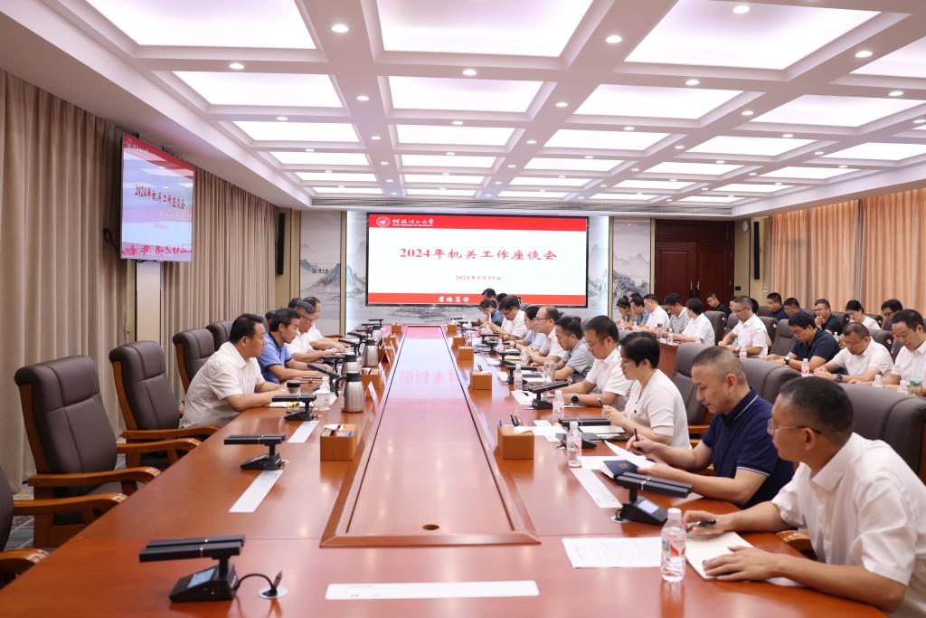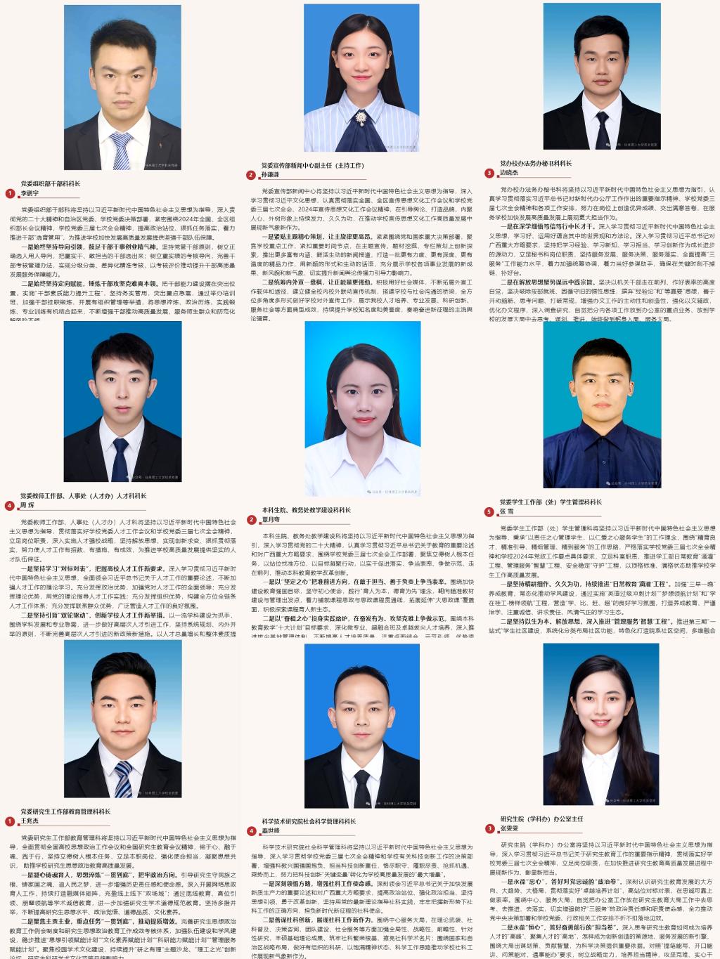 聚焦同频共振,务求担当有为。召开2024年机关工作座谈会,邓军书记对机关党建引领事业发展提出明确要求。对机关党委党建与业务融合示范项目进行验收,将党建与业务融合作为每月支部书记例会必提必点内容,分类指导各支部召开党建与业务深度融合推进会,针对性提升融合质效。机关部门和党员在学校综合改革、学科建设、教学科研、人才培养、服务地方等中心工作中奋发有为,学校顺利获评3个博士点,机关部门全覆盖参与“九个桂工”建设,所负责的2024年建设任务均100%完成。