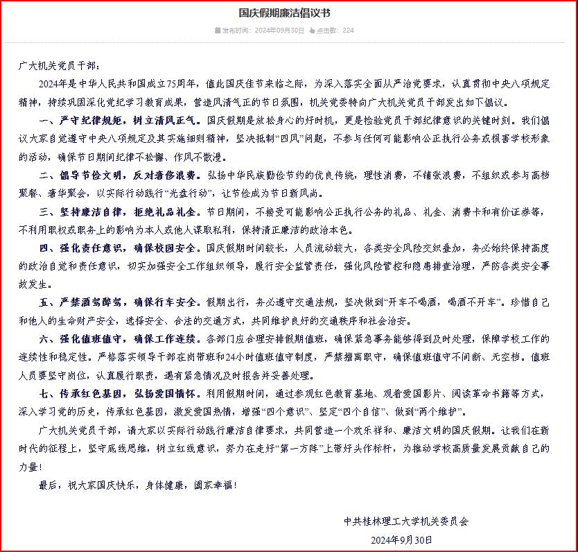 为充分展示2024年各单位、各部门推动事业发展的特色做法、亮点成果、工作实绩,校园网特推出《点赞2024》专栏,旨在激励广大师生汲取奋进力量,以更饱满的信心、更高涨的热情迎接新一年的到来、做好新一年的工作,为实现“九个桂工”新愿景、建设高水平理工大学、谱写中国式现代化广西篇章作出新的更大贡献。