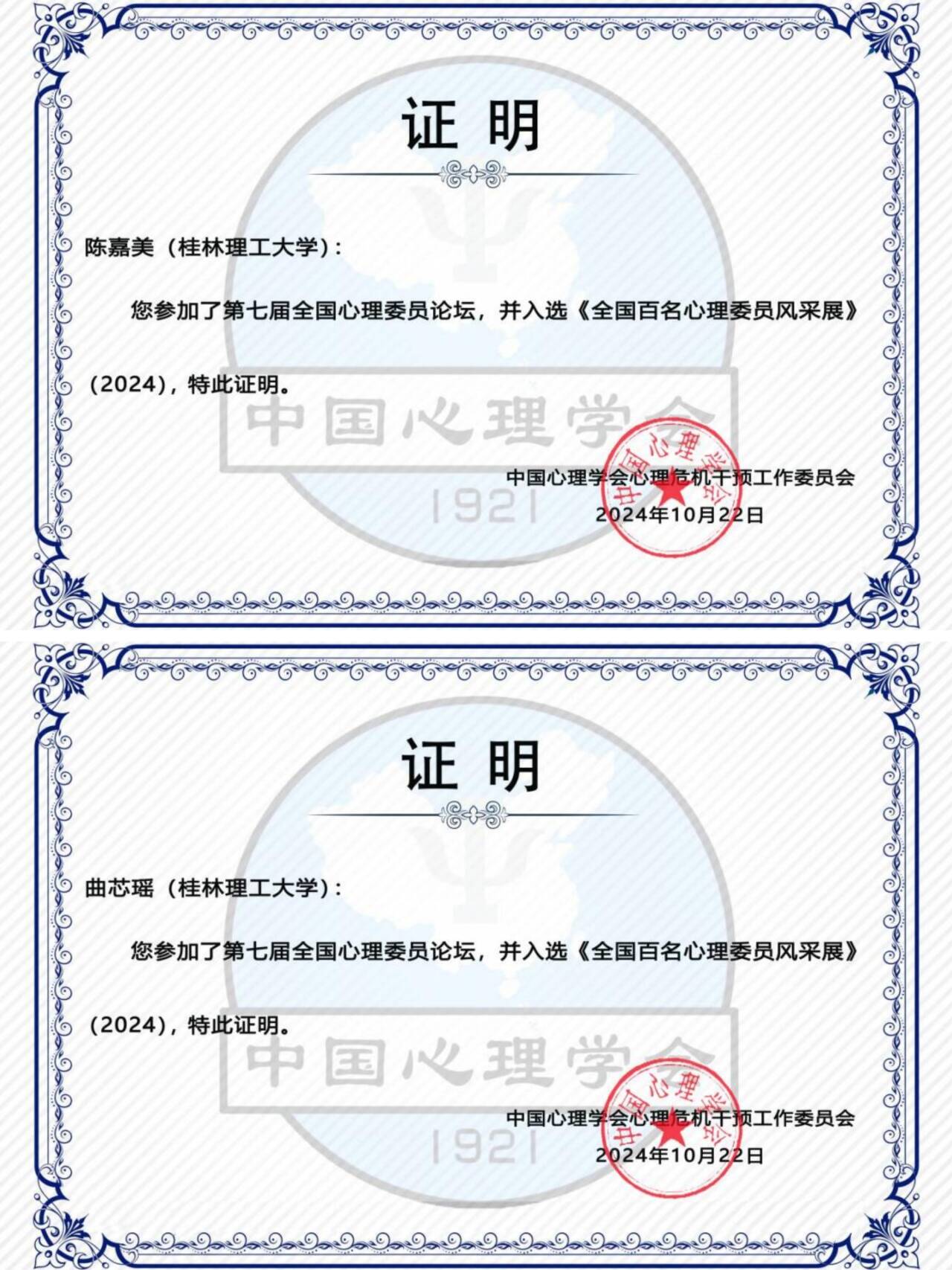 曲芯瑶、陈嘉美同学入选“全国百佳心理委员风采展”