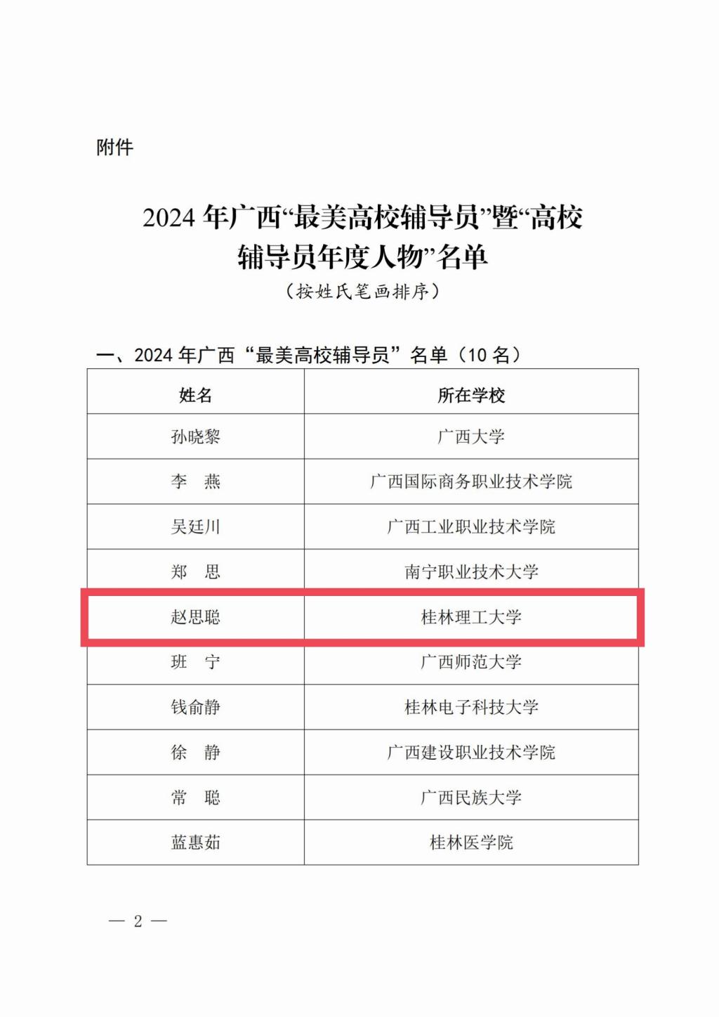 辅导员赵思聪老师入选2024年广西“最美高校辅导员”