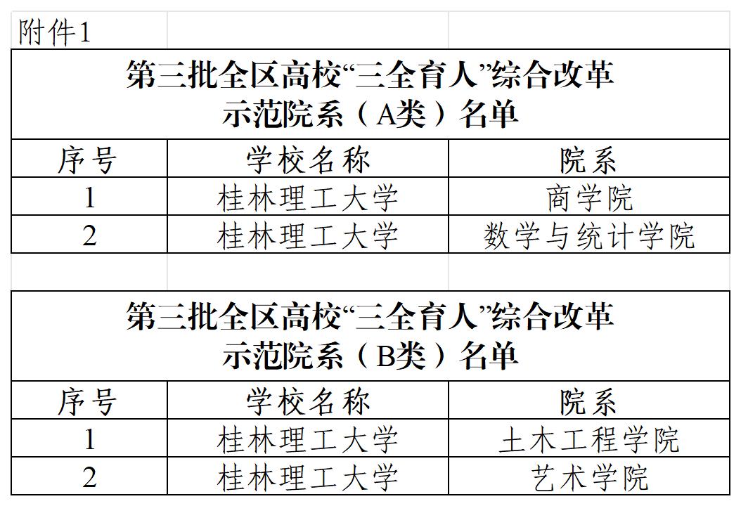4个学院入选第三批全区高校“三全育人”综合改革示范院系