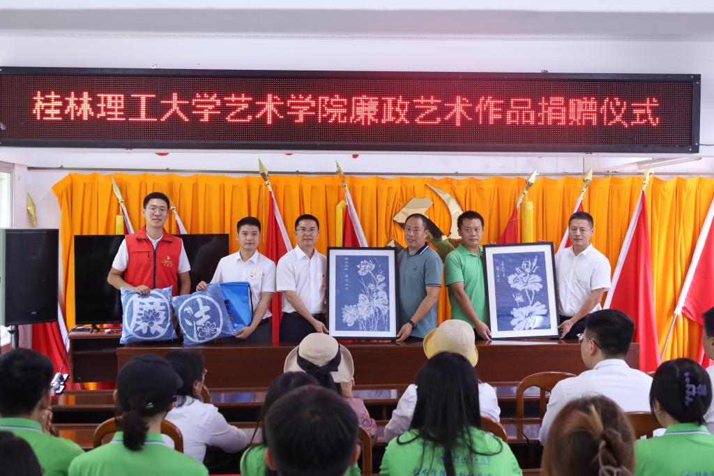 服务“大美桂工”建设彰显新风貌,助力建成廉政文化园、民族团结园、科学匠心园、体育文化园、雁祥花廊。担当美育职责展现新作为,举办2024发现雁山广西美术作品展暨第四届广西漆画作品展、服装发布会、依法治校主题艺术作品展等系列高水平展览和“华彩传承·艺心筑梦”主题沉浸式体验活动,持续推动以美育人、以美培元。服务乡村振兴迈出新步伐,为帮扶村设计村徽、农产品商标、村集体产业产品包装,捐赠助学金和廉洁艺术作品、衣物一批,绘制文化长廊和墙绘200多平方米。