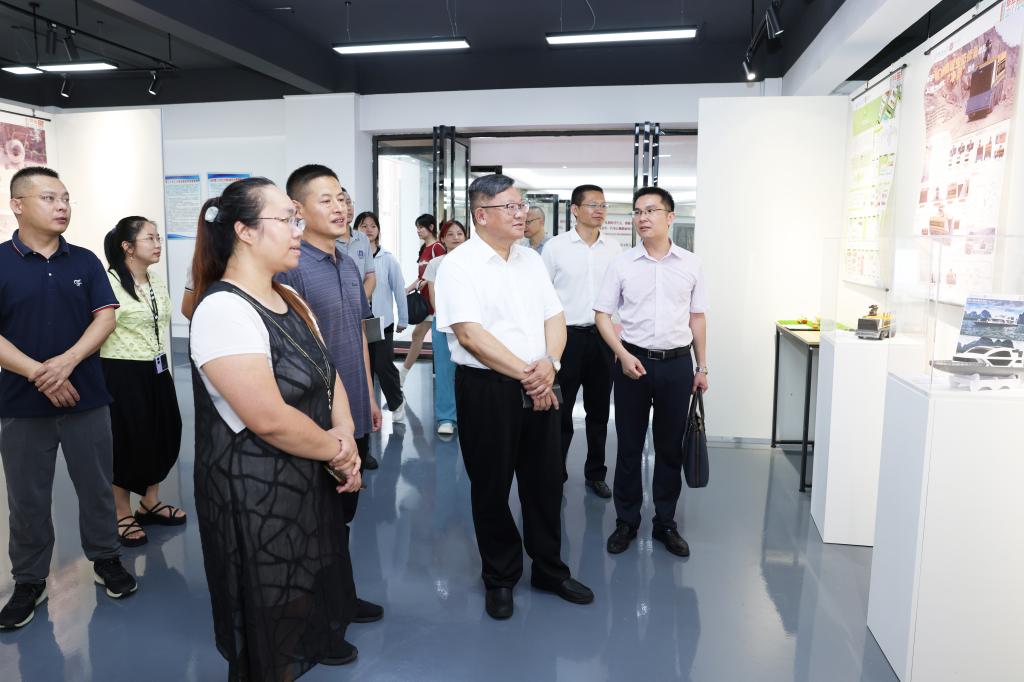 邓军书记一行在博雅楼调研指导艺术学院毕业设计作品展