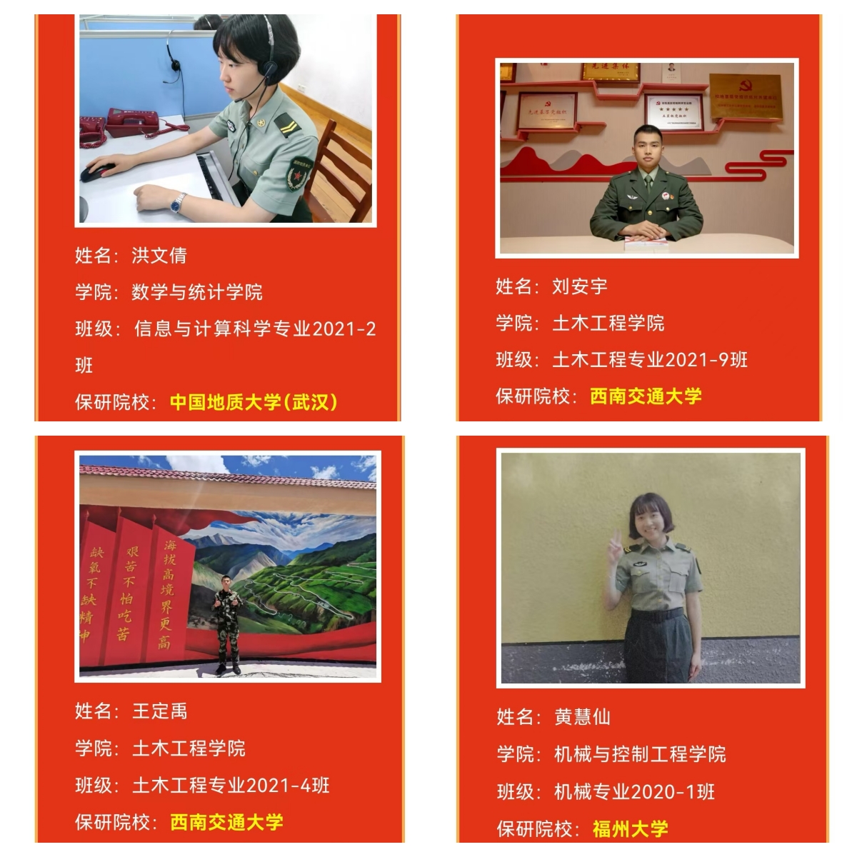 4名优秀退役大学生士兵保送研究生