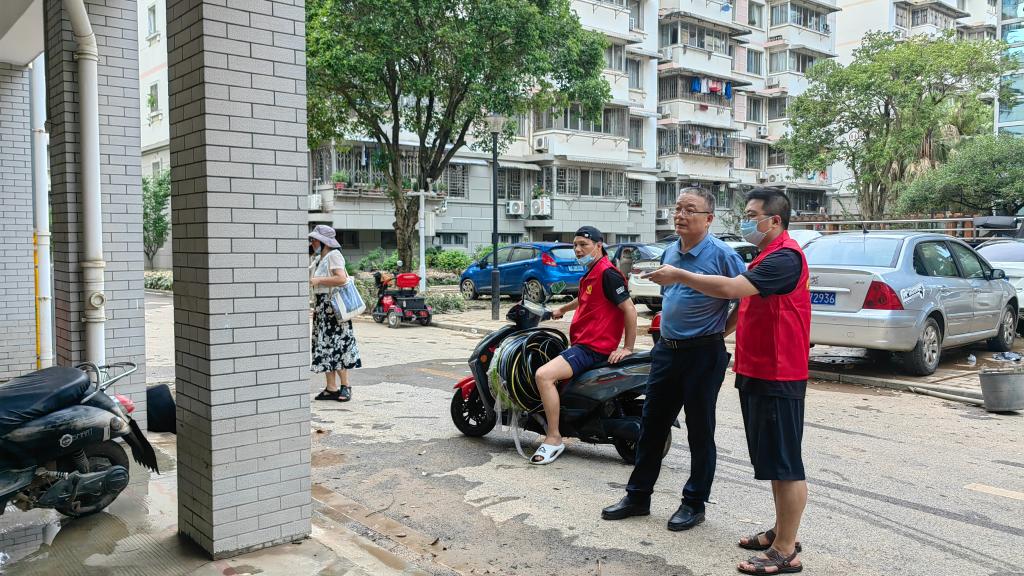 灾后重建,各地物资异常紧缺。受洪水影响,东城小区消防栓全部处于停水状态,清淤工作受到严重考验。先到一步的财务处党支部率先发现问题,支部党员们发挥财务人“能挑重担、敢于创新”的精神,在小区内四处奔波研判,大胆提出截取楼栋主水管的妙招,有效解决用水问题。