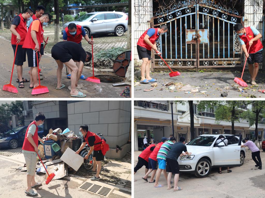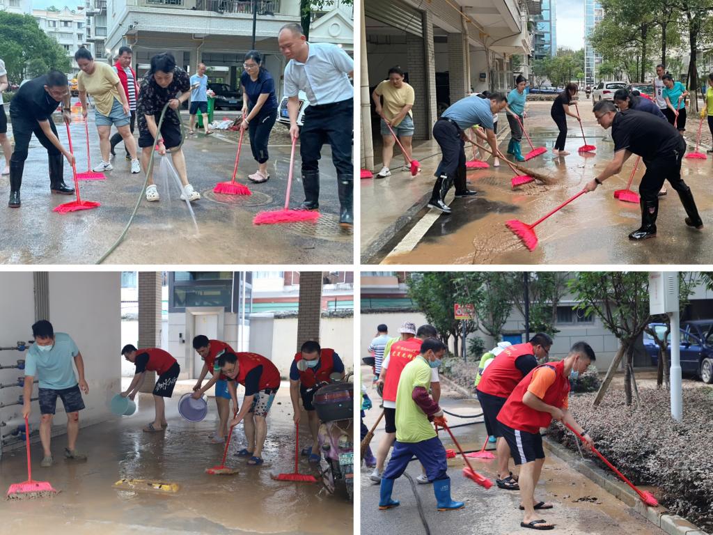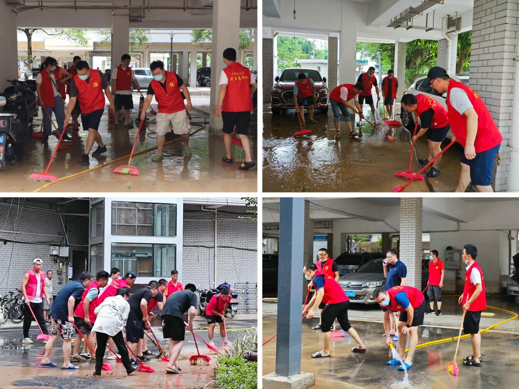 6月20日,桂林特大洪水洪峰过境,水位回落,城区积水开始有序排出。受地势影响,Beat365中文官方网站东城小区家属区积水严重,洪水退去后留下厚厚一层淤泥,小区内被水泡过的垃圾以及物品遍地,严重影响居民正常出行生活。但受限于人力物力,清淤消杀工作未能得到有效开展。越是艰难越向前,前日刚刚在屏风校区战斗的机关党员们再次挺身而出,奋勇争先,在东城小区刮起一股助清淤、保通畅的“红色旋风”。