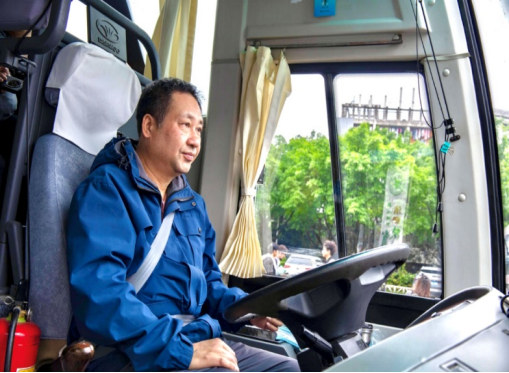下午六点,校车司机林文忠准时驾车停在了校车上车点,他面带微笑,和有序排队上车的跨校区通勤的师生们打招呼。和其他的校车司机同事一样,他日复一日,往返屏风和雁山校区之间。这两点一线的距离,或许单调,却因有他们的坚守而熠熠生辉。校车司机们以热情饱满的精神面貌,安全高效完成每天的班车任务;以耐心与专注,为桂工人的后勤服务保驾护航;以高尚的敬业精神,让两校区之间联系更加紧密无间。
