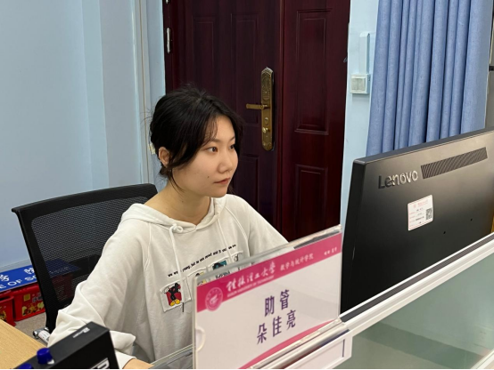 下午5点左右,数学与统计学院研究生助管朵佳亮在办公室协助管理研究生的日常学习和生活,确保各项工作顺利进行。助管工作不仅能帮助老师处理一些繁琐事务,也能让自己的能力得到更好地锻炼。她深知这个岗位的责任重大,因此总是兢兢业业、勤勤恳恳。在这个过程中,她深刻体会到了劳动的意义和价值,也更加珍惜每一次为同学们服务的机会。