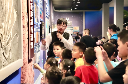 环境科学与工程学院薛煜霖同学正在讲解地质博物馆展品