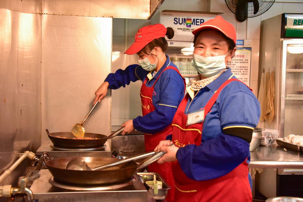 食堂阿姨在为师生烹饪美食