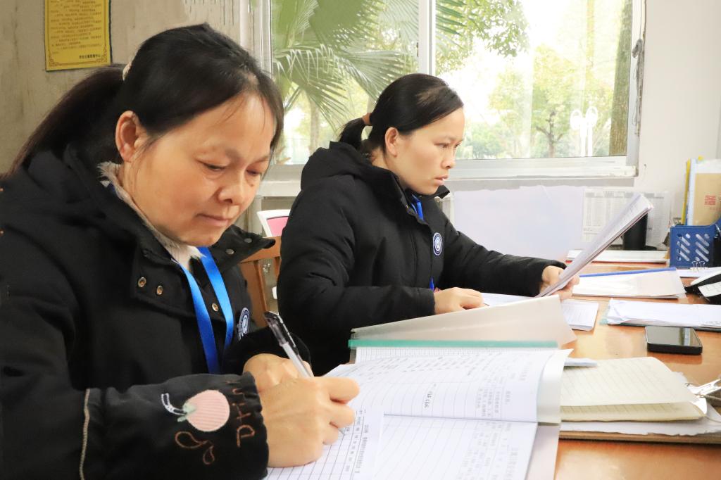 宿管王芳阿姨在登记宿舍内务整理情况