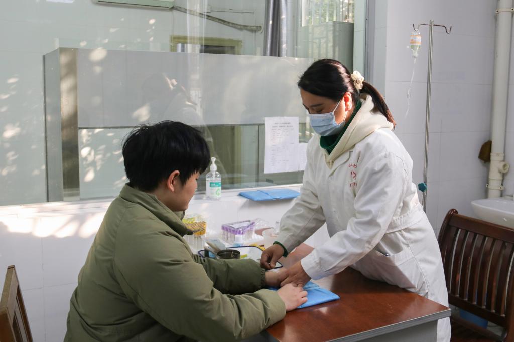 凌雪梅护士在为前来就诊的同学注射点滴
