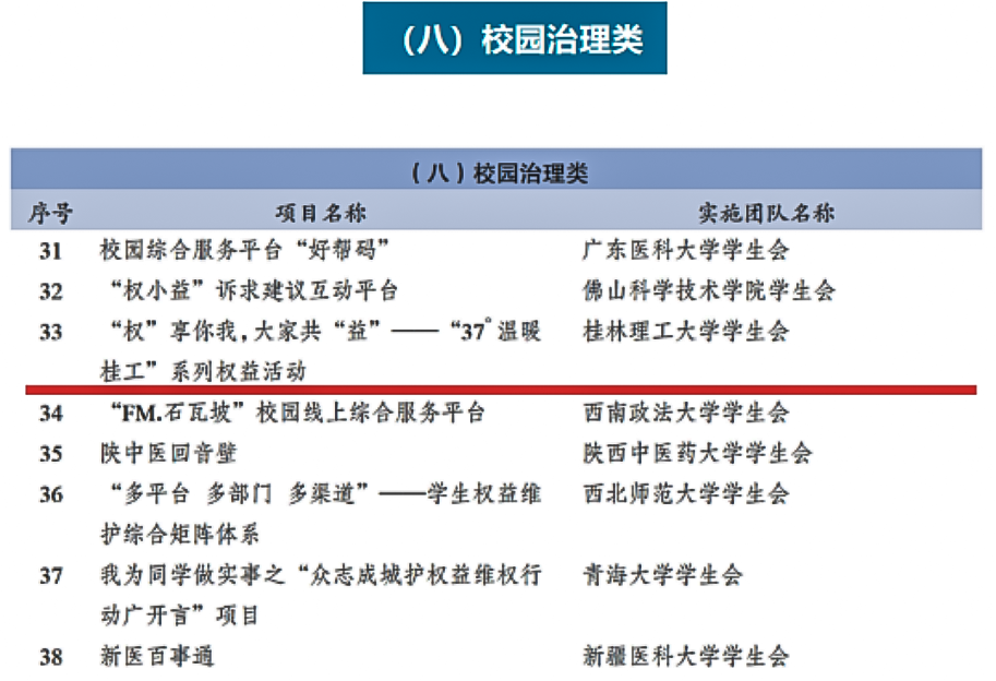 校学生会《“权”享你我,大家共“益”——“37°温暖桂工”系列权益活动》入选全国高校学生会组织“我为同学做实事”项目交流展示