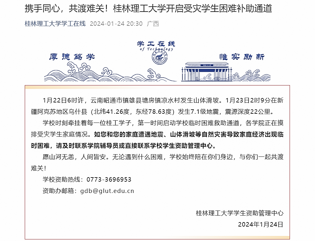 为新疆、云南等地受灾学生开启困难补助通道