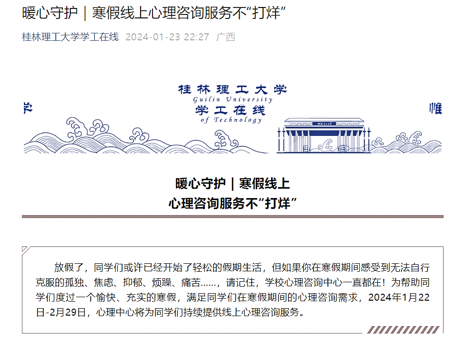 心理健康教育与咨询中心为学生提供寒假线上心理援助