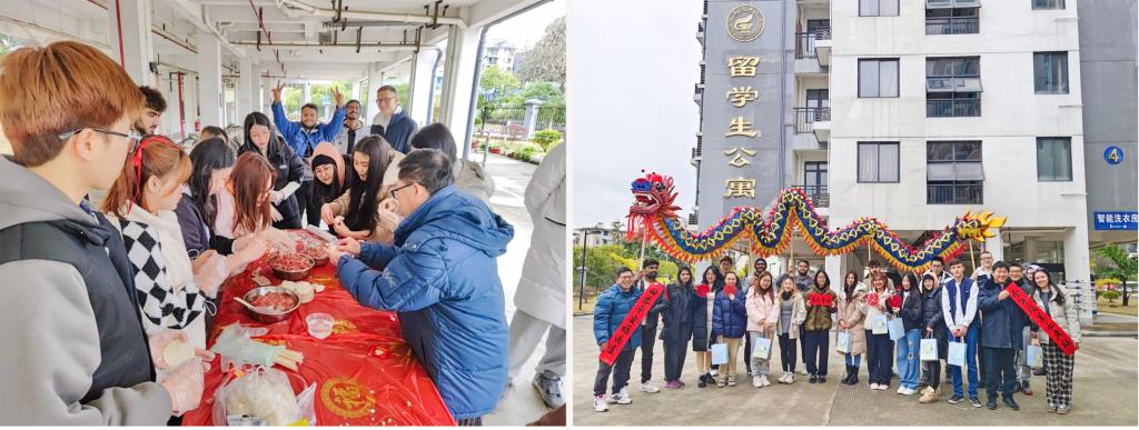 春节临近,党委研究生工作部深入走访慰问延迟离校研究生,用心听取同学们的需求与建议,并向他们传达学校党委的深切关怀,向留校研究生送去温情与关爱;积极协调开通提前返校绿色通道,确保提前返校开展科研任务的研究生基本生活条件有保障。心理健康教育与咨询中心持续为全校学生提供寒假线上心理援助,通过援助热线守护学生心灵家园,在新疆7.1级地震、云南镇雄山体滑坡发生后,学工部(处)第一时间开展受灾学生排查,为因地震、山体滑坡等受灾学生开通临时困难救助通道;数学与统计学院全面排查假期因自然灾害导致家庭经济出现困难学生情况,寒假期间向困难学生发放临时困难补助、返乡路费补助等51人次。机械与控制工程学院组织辅导员通过线上线下相结合的方式深入开展“桂工有情怀,家访暖寒冬”主题家访活动,进一步强化家校联动共育,促进学生健康成长成才。春节前夕,国际教育学院(国际交流处)组织留校留学生开展丰富多彩的迎新年活动,通过开展包饺子、观舞龙、赏春联等活动,让在校留学生感受中国春节的文化氛围和浓浓年味。
