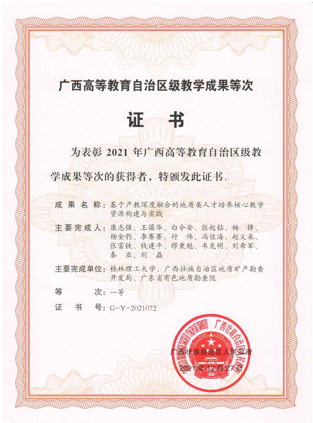 团队成员参与的教学成果获评广西高等教育自治区级教学成果奖一等奖