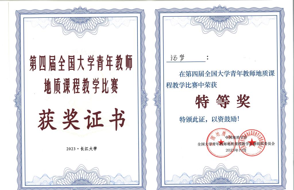 团队成员冯梦副教授获全国大学青年教师地质课程教学比赛特等奖