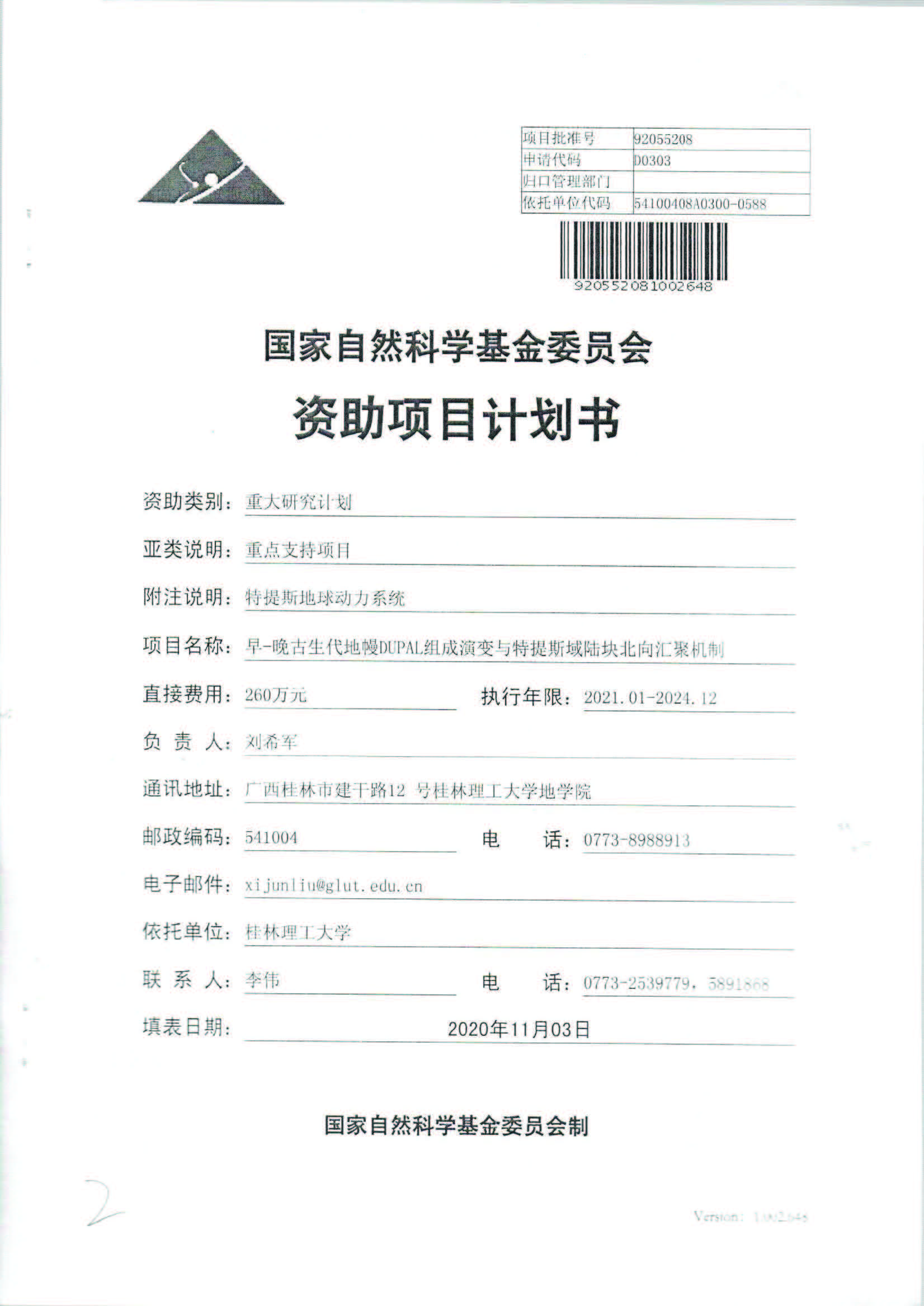 刘希军教授获立项国家自然科学基金重大研究计划重点支持项目