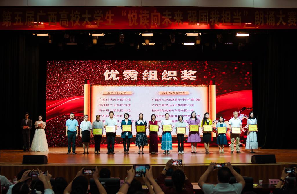 参加广西区高校图书馆诵读大赛并获优秀组织奖和一等奖、二等奖