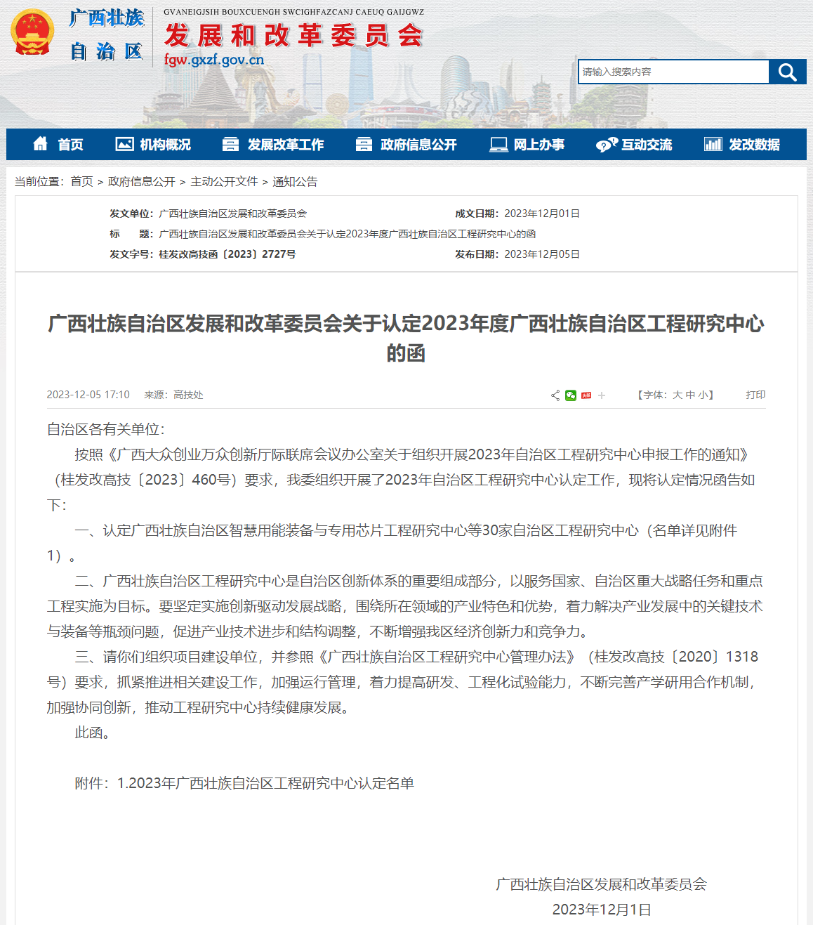 “广西壮族自治区网信设备与技术工程研究中心”获批自治区工程研究中心