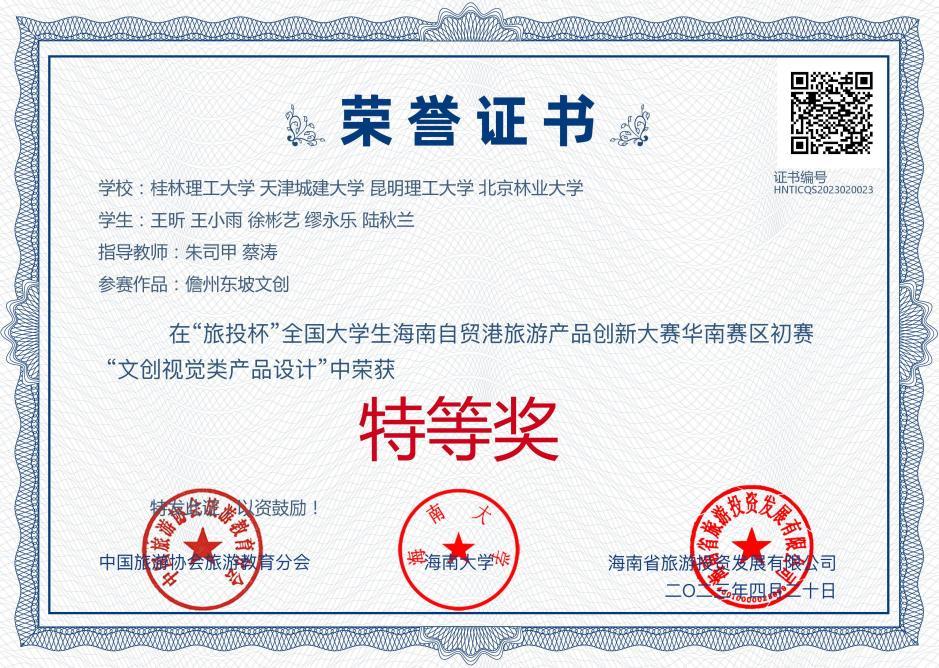 获“旅投杯”全国大学生海南自贸港旅游产品创新大赛华南赛区特等奖