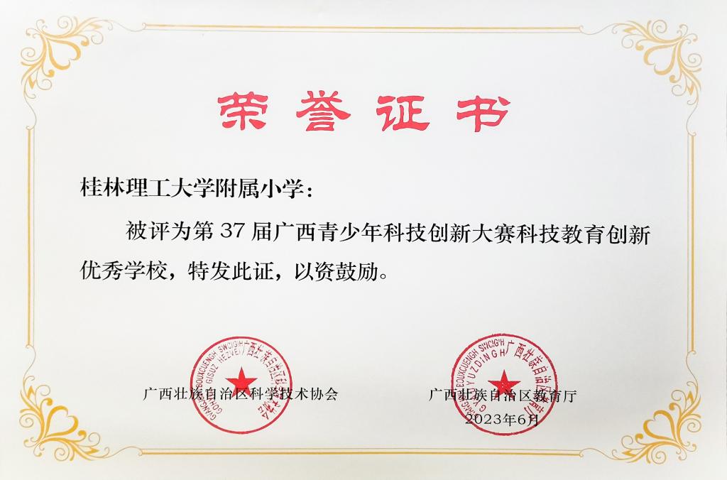 获评第37届广西青少年科技创新大赛科技教育创新优秀学校