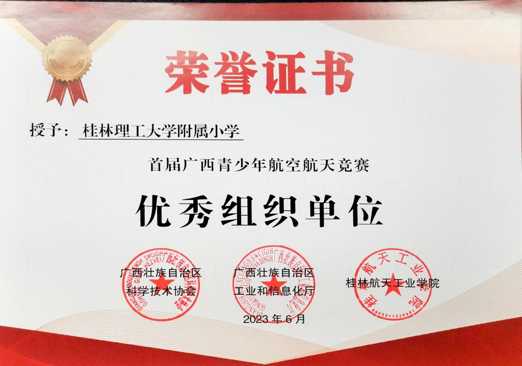 获评首届广西青少年航空航天竞赛优秀组织单位