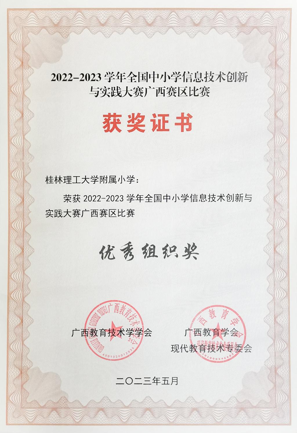 获评2022-2023学年全国中小学信息技术创新与实践大赛广西赛区比赛优秀组织奖