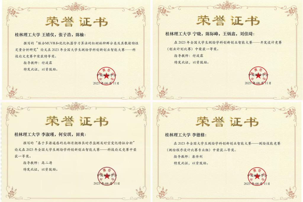 获2023年全国大学生测绘学科创新创业智能大赛国家级特等奖、一等奖、二等奖