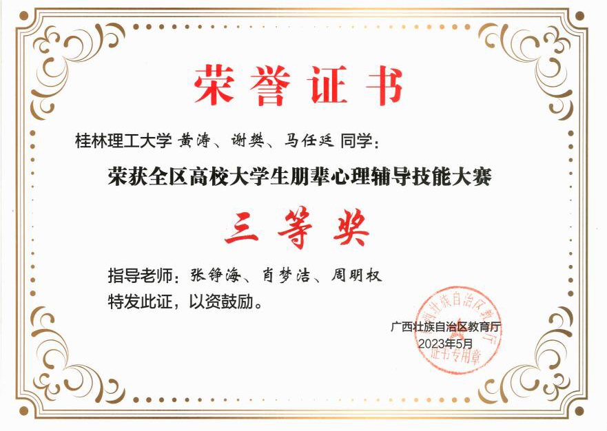 获全区高校大学生朋辈心理技能辅导大赛三等奖