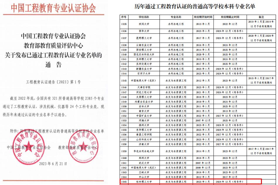 水文与水资源工程专业顺利通过工程教育专业认证(学院成为全校唯一一个所有本科专业全部通过工程教育认证的学院)